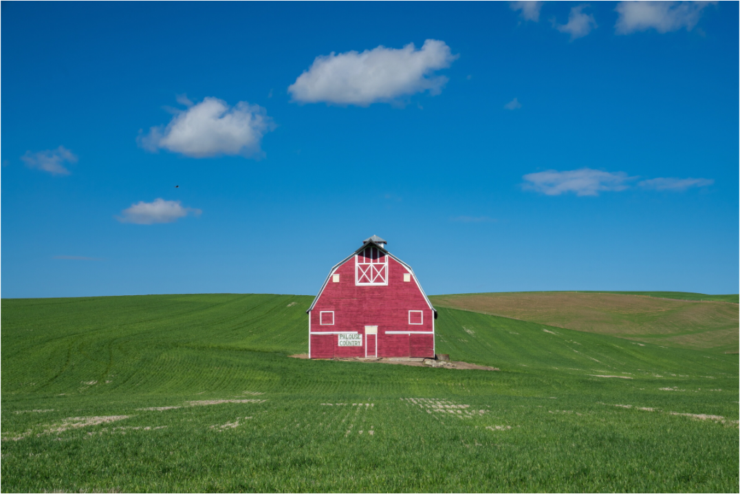 This barn is iconic because it is right off the highway, just south Uniontown, WA. Most people shoot it from the side because that is where the pulloff is located. I woke up early and arrived in the softer morning light and walked along the busy highway until I was directly in front of the barn. I took a few shots and like this one best because of the clouds and the bird flying through the scene.